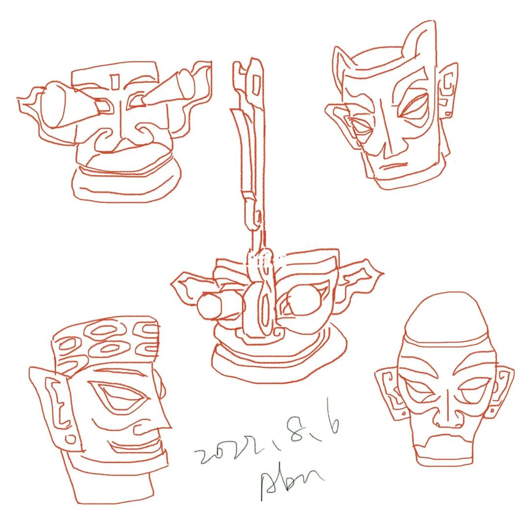 三星堆青铜面具手绘