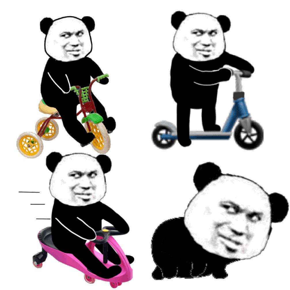 沙雕熊猫头玩扭扭车四连动图_车四_沙雕_头玩_扭扭_连动表情