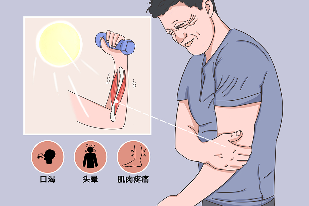 随汗液排出很多盐(nacl),导致肢体和腹壁肌肉出现疼痛性痉挛的现象
