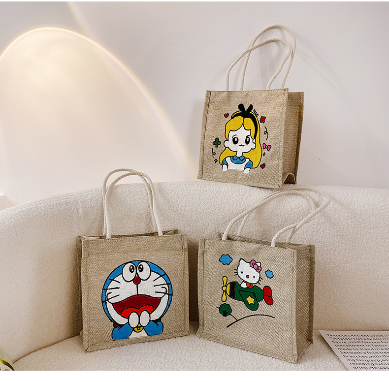 餐包小学生卡通diy涂鸦麻布袋帆布包学生可爱带饭餐包棉麻日式卡通