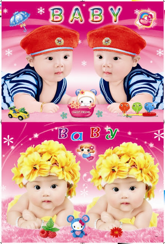 宝宝海报 胎教海报挂图 宝宝画 可爱宝宝图 双胞胎k1848-49图片_4