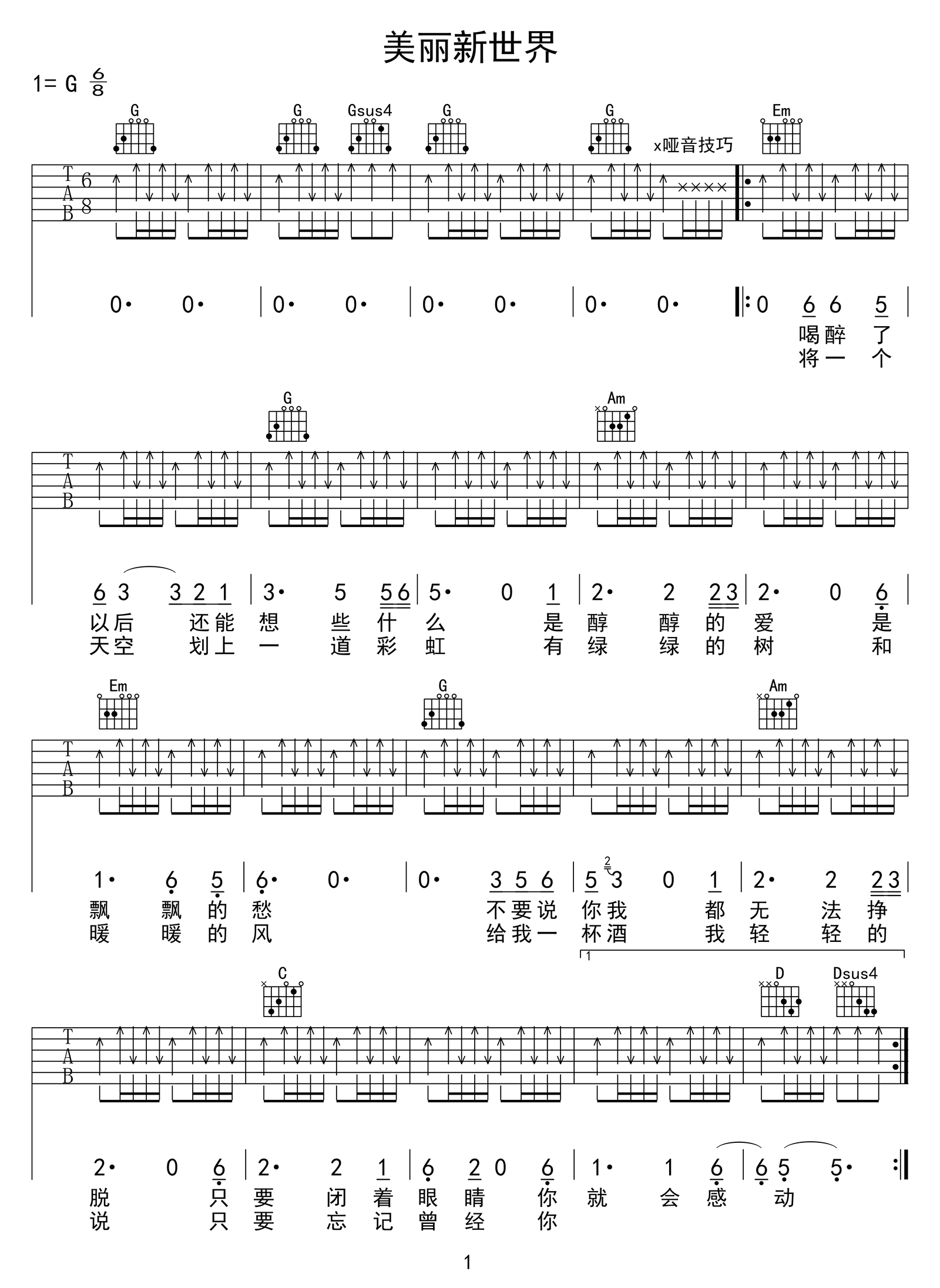 美丽新世界_简谱_搜谱网