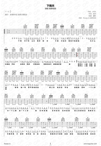 下雨天吉他谱(图片谱,原版,弹唱,吉他谱)_南拳妈妈 - 吉他社