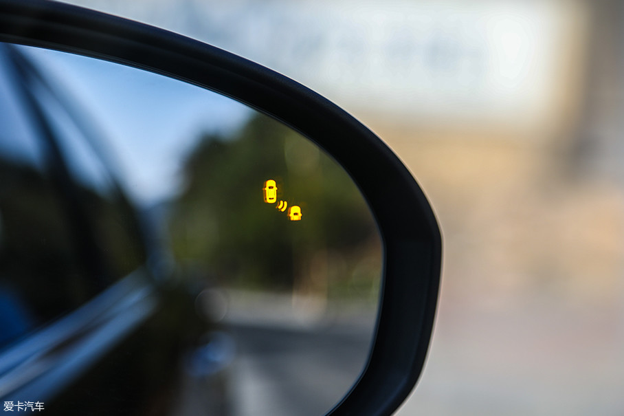 我们的试驾车配备了并线辅助功能,变道时若检测到后方有来车,警示标识