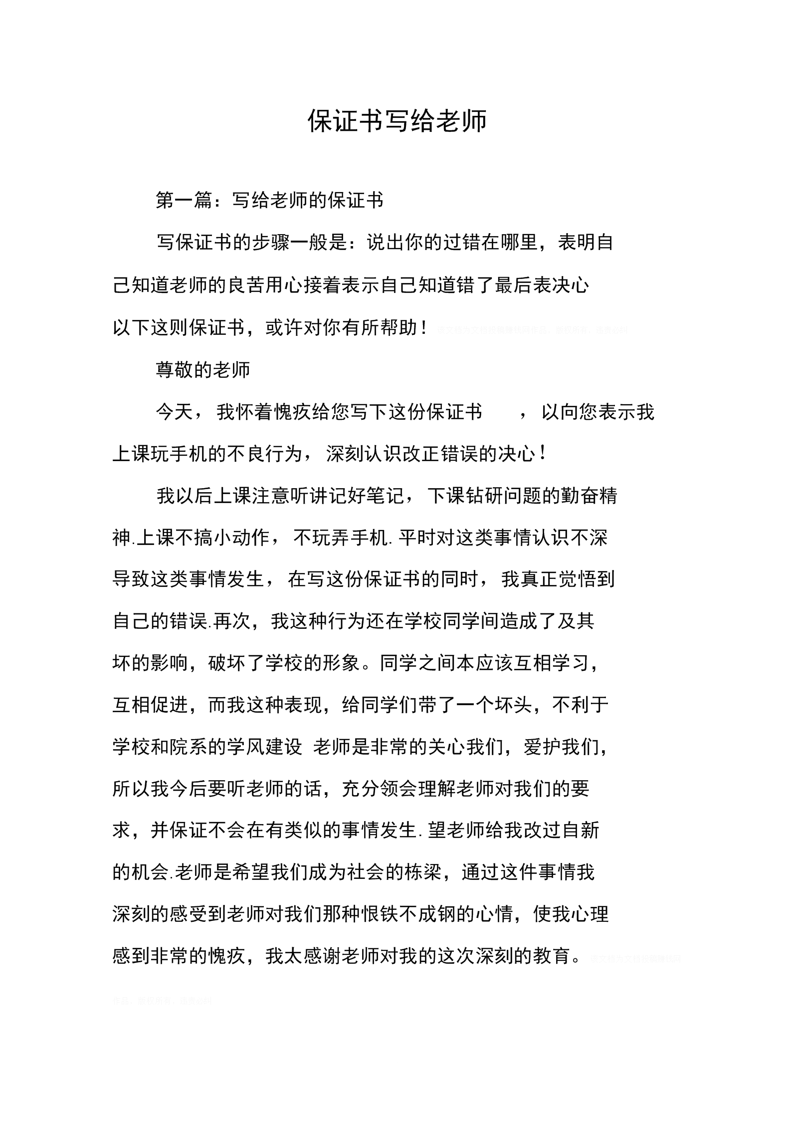 保证书写给老师50字doc47页