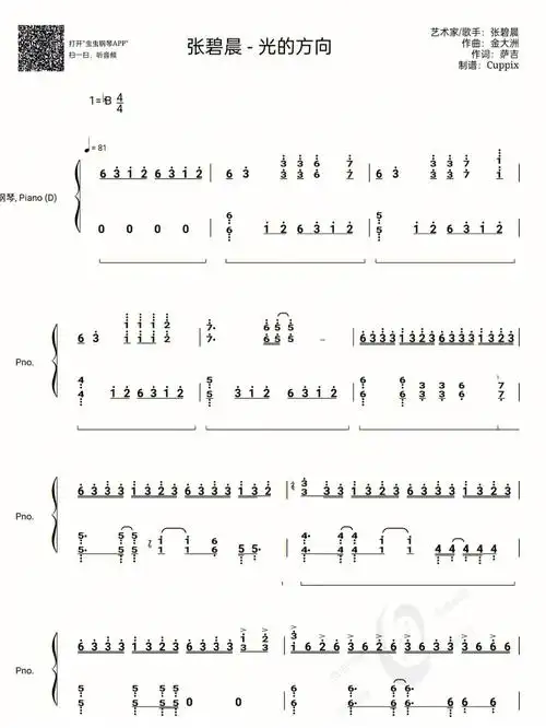 光的方向钢琴谱双手简谱