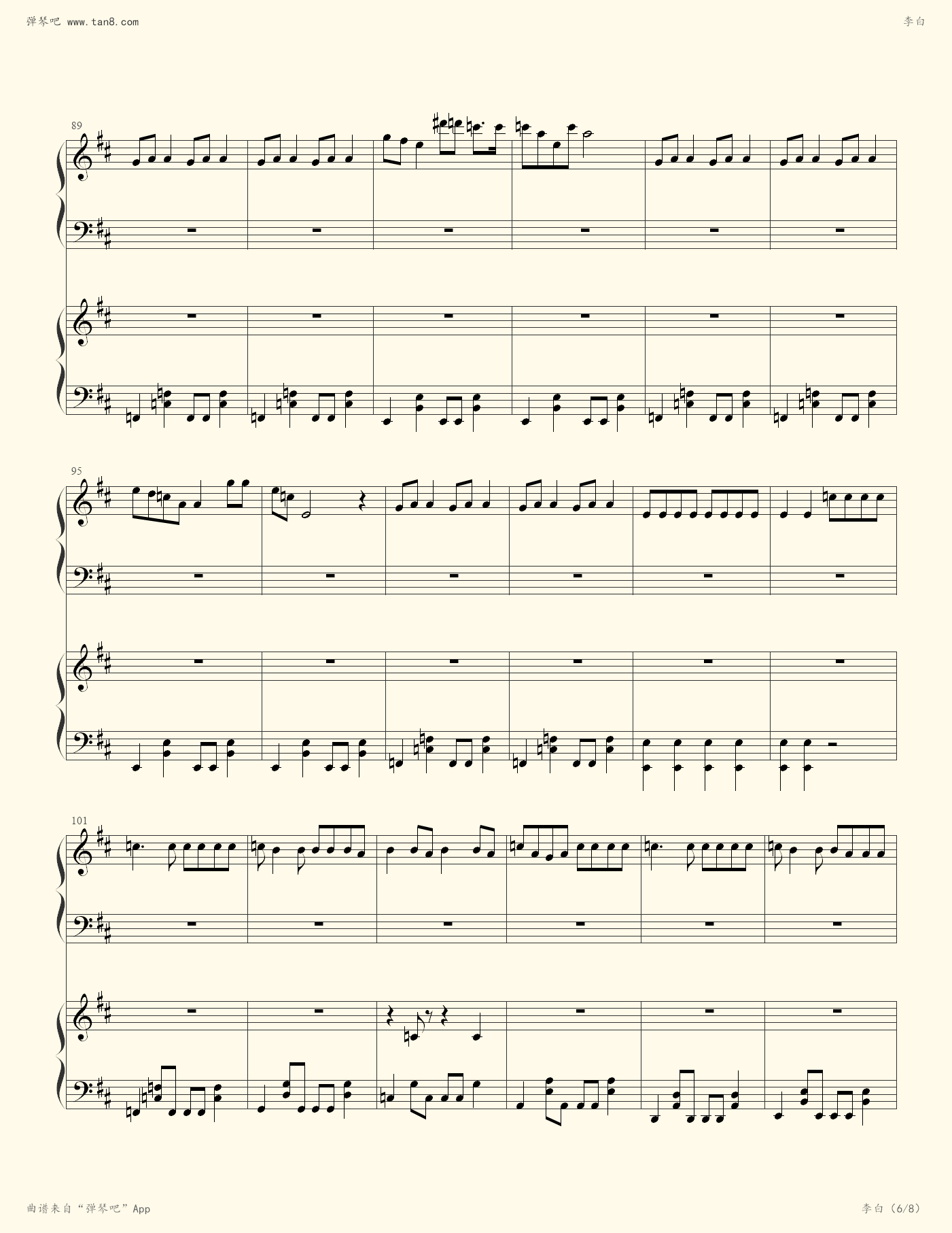 李白-李荣浩五线谱预览4-钢琴谱文件(五线谱,双手简谱,数字谱,midi