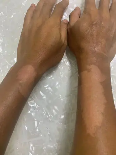 女朋友晒黑的手,对比图.