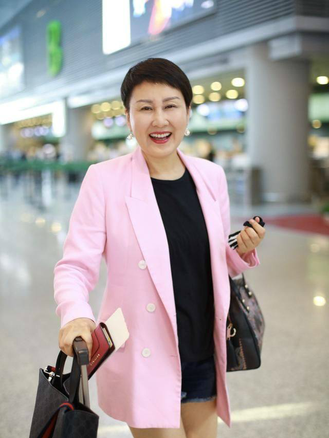 57岁张凯丽厉害,大妈的年纪硬穿成美少女,粉西装配热裤超有范_风衣