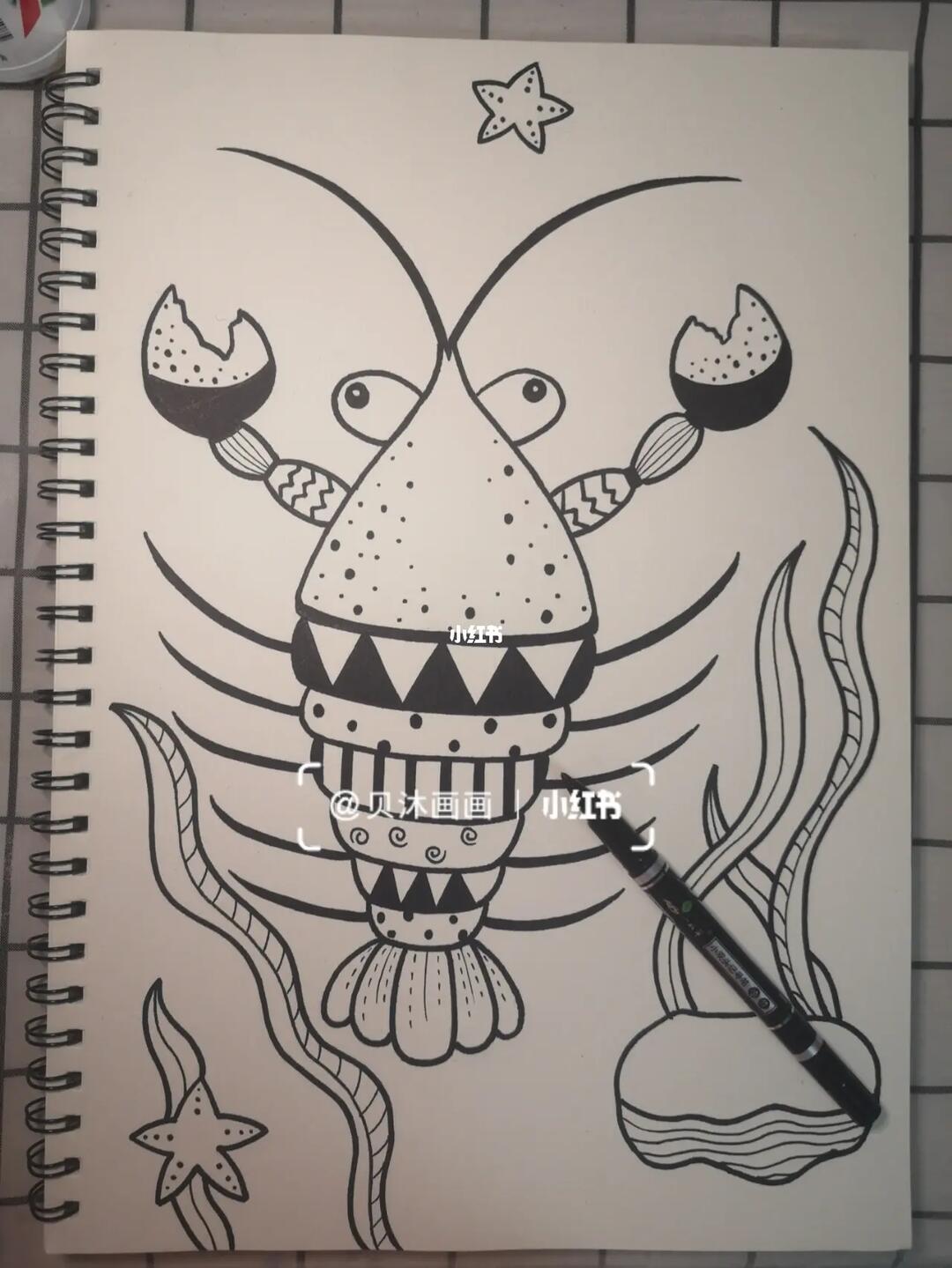 儿童线描作品:大龙虾.#抖音图文来了 #原创作品 #创意美术 - 抖音