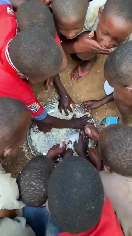 非洲的孩子,吃东西都是狼吞虎咽,慢一点就吃不上了!