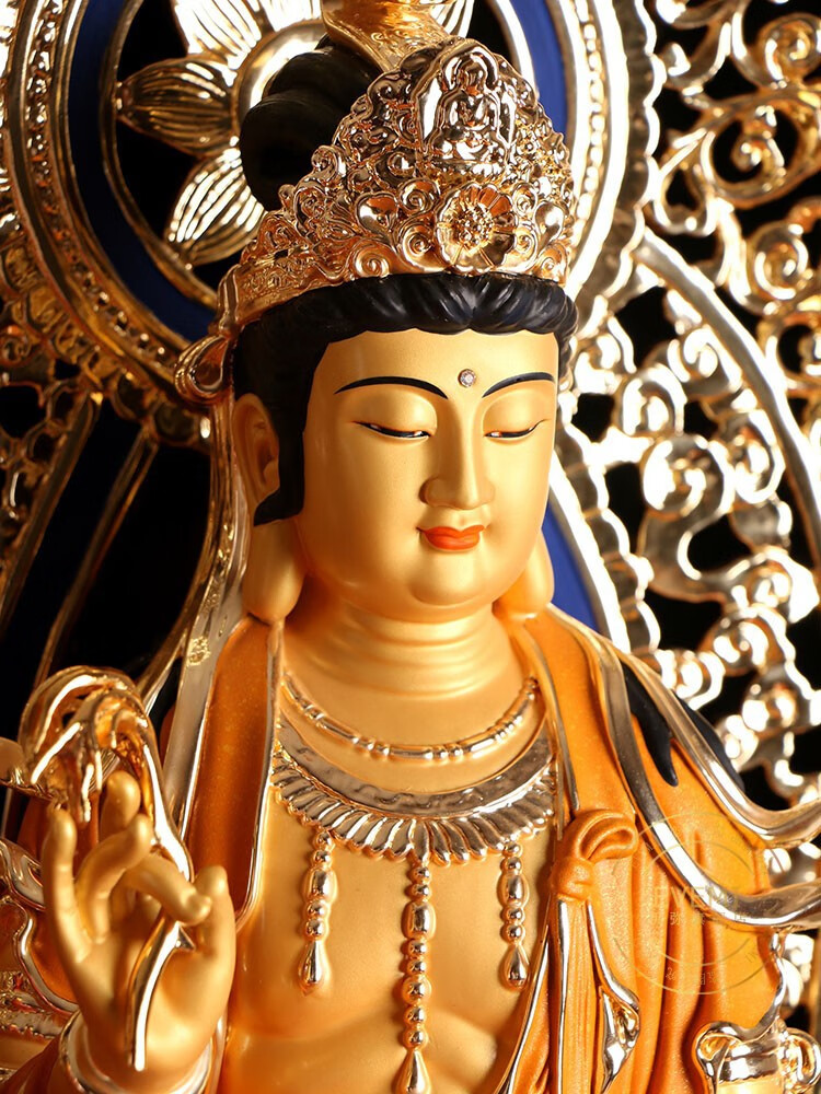 伊弥铜鎏金佛像西方三圣铜像纯铜阿弥陀佛观音供奉摆件阿弥陀佛