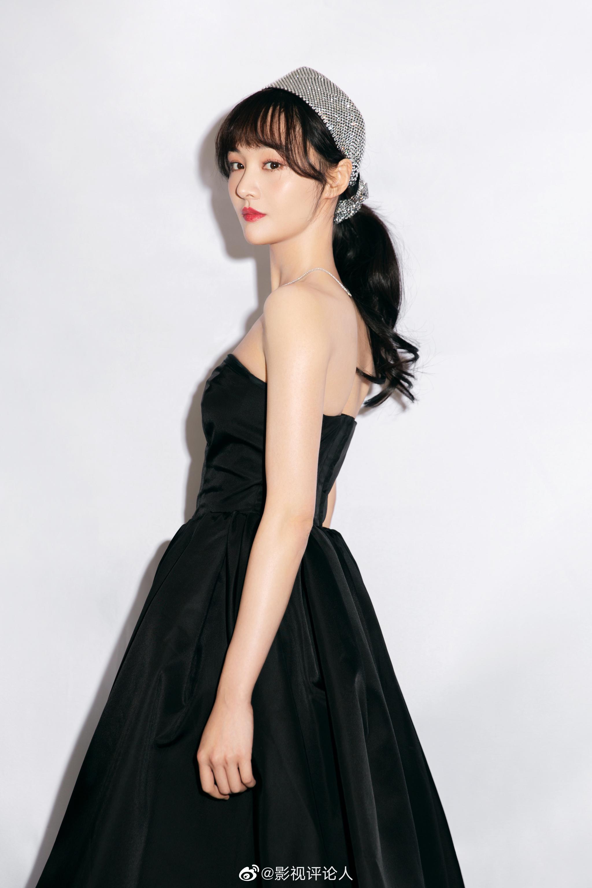 郑爽出席活动,黑色抹胸长裙配碎钻发带效果港风十足