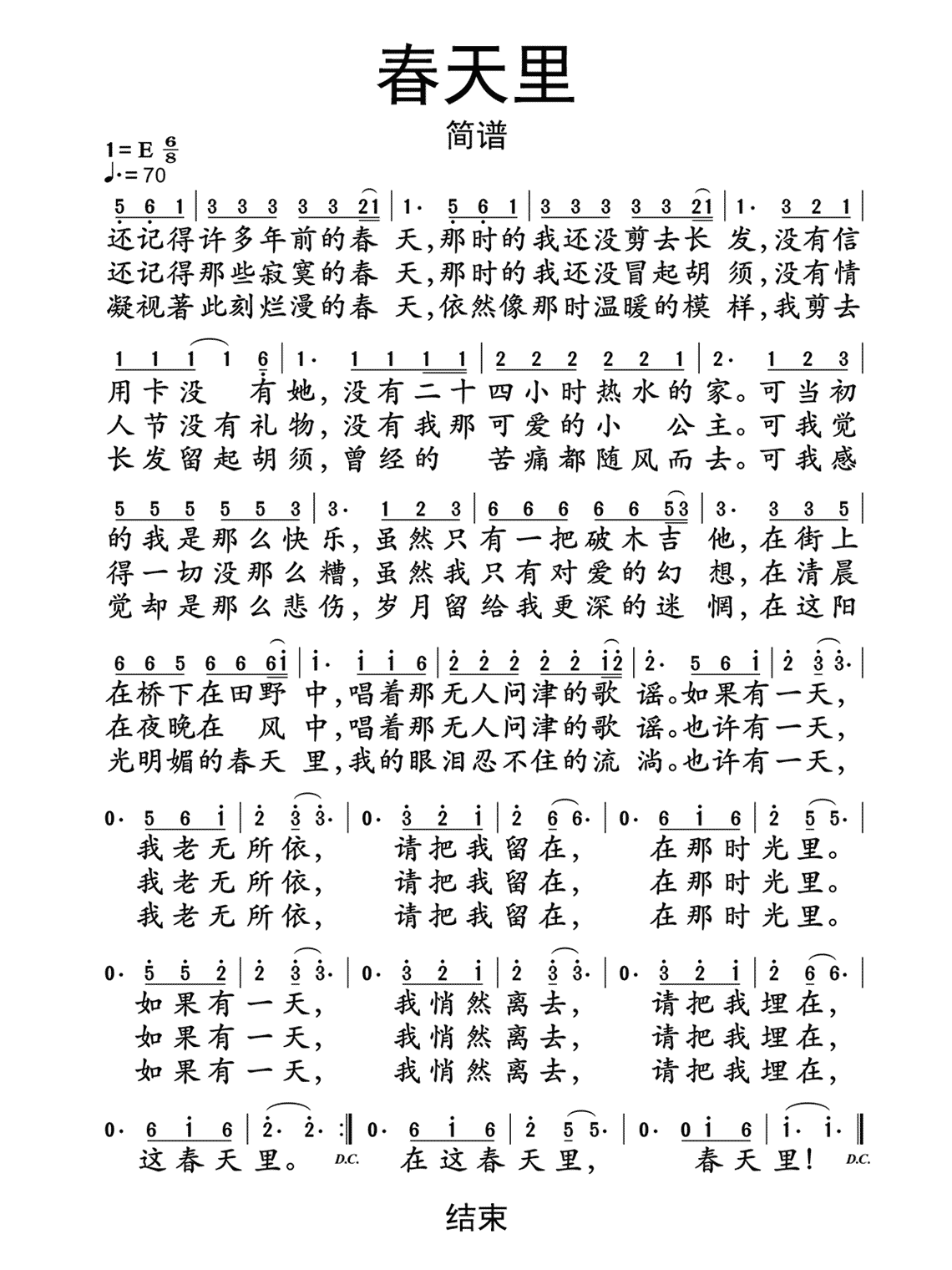 春天里曲谱1
