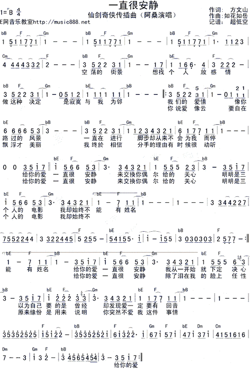 谁有《一直很安静》的陶笛普啊,简谱也行,谢谢了!
