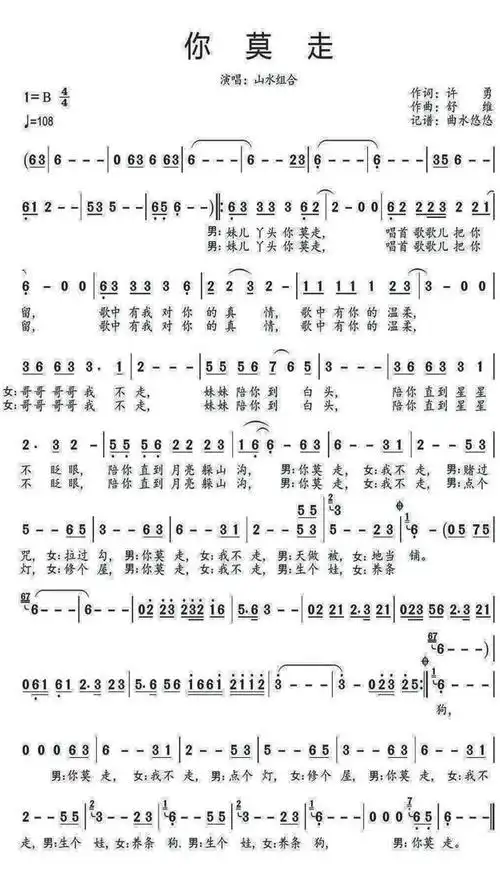 2020年流行歌曲你莫走歌曲简谱送给大家