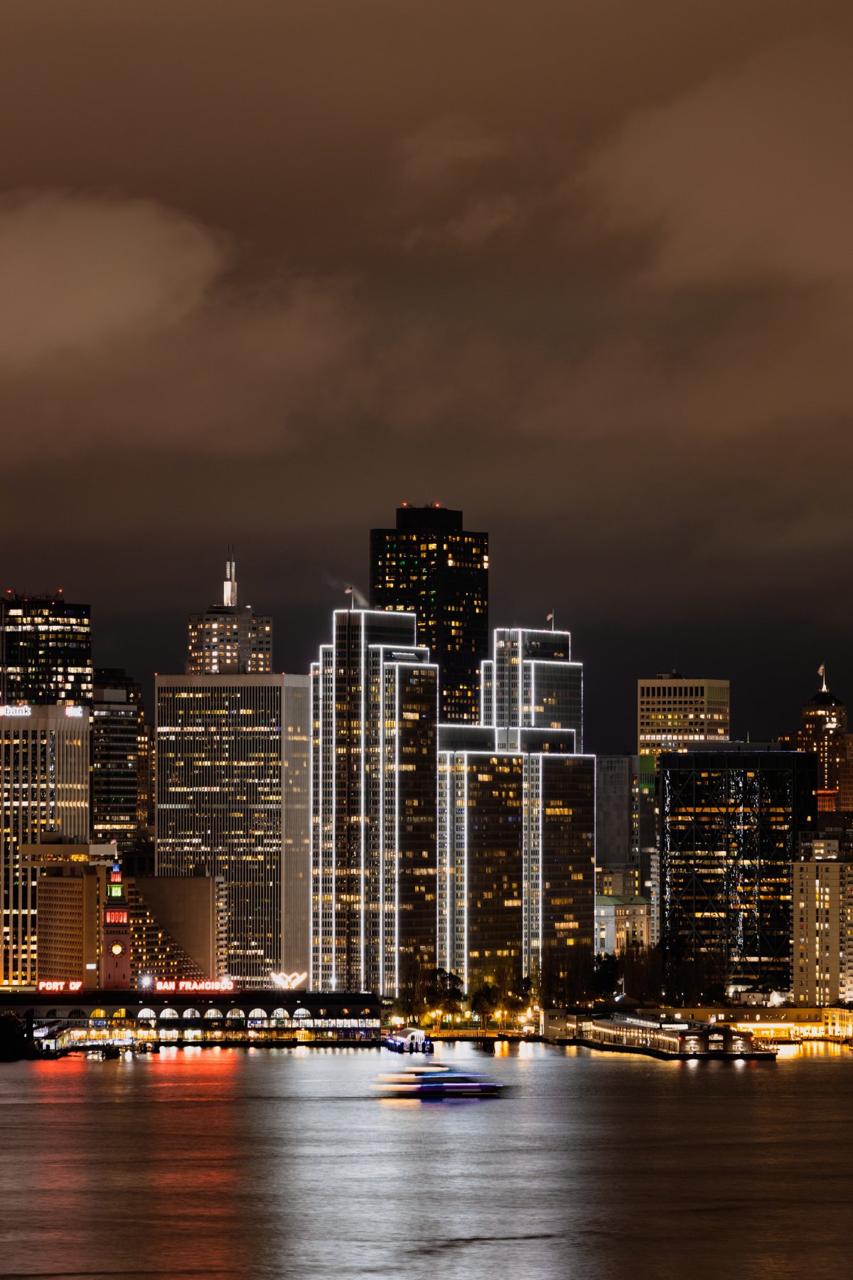 城市之夜,摩天大楼,灯光,桥梁,海湾 壁纸 - 1920x1200