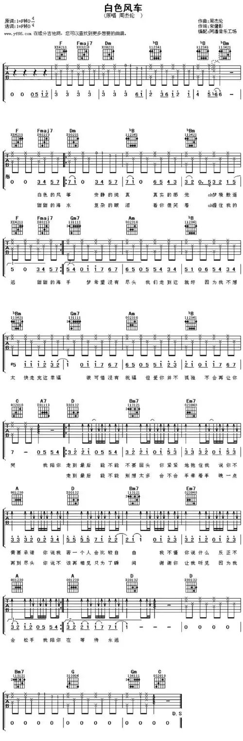 白色风车 周杰伦吉他谱合集(二十八)#白色风车吉他谱 #周杰 - 抖音