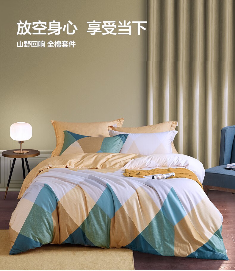 名创优品官方旗舰店肤棉磨毛双拼刺绣四件套轻奢感南通家纺床单被套床