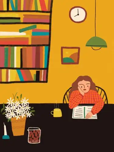 安静的女孩看书居家卡通插画学习休息jpg素材家居