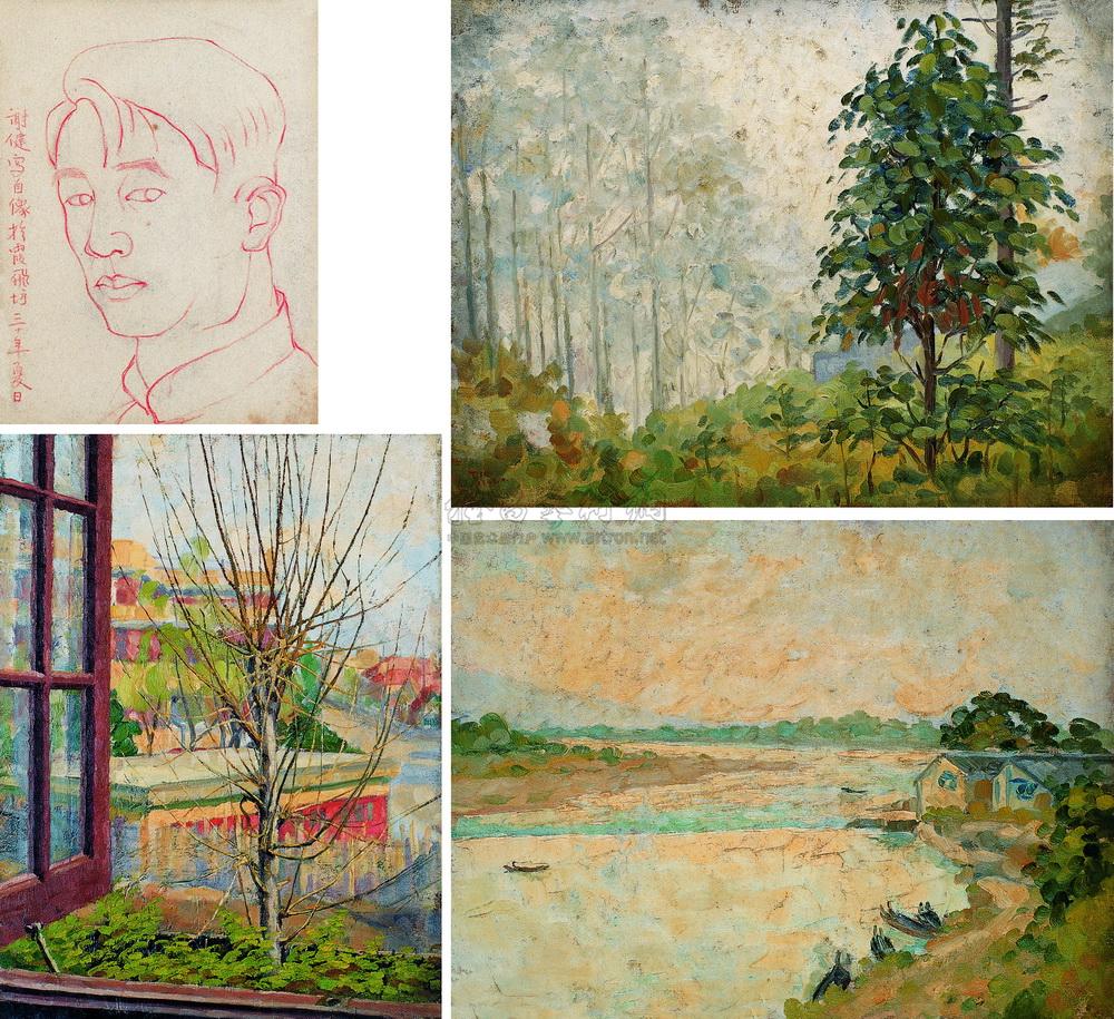 0027风景自画像共四幅油画素描