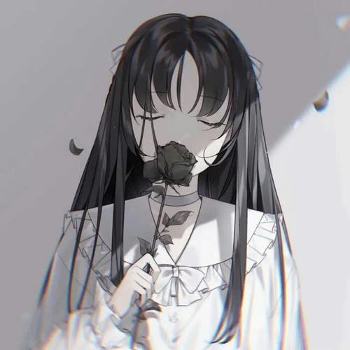 黑白伤感闻花动漫女生头像图片