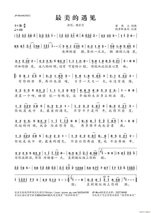 最美的相遇(余启翔词邵兵曲)简谱_简谱大全_zzmao简谱网
