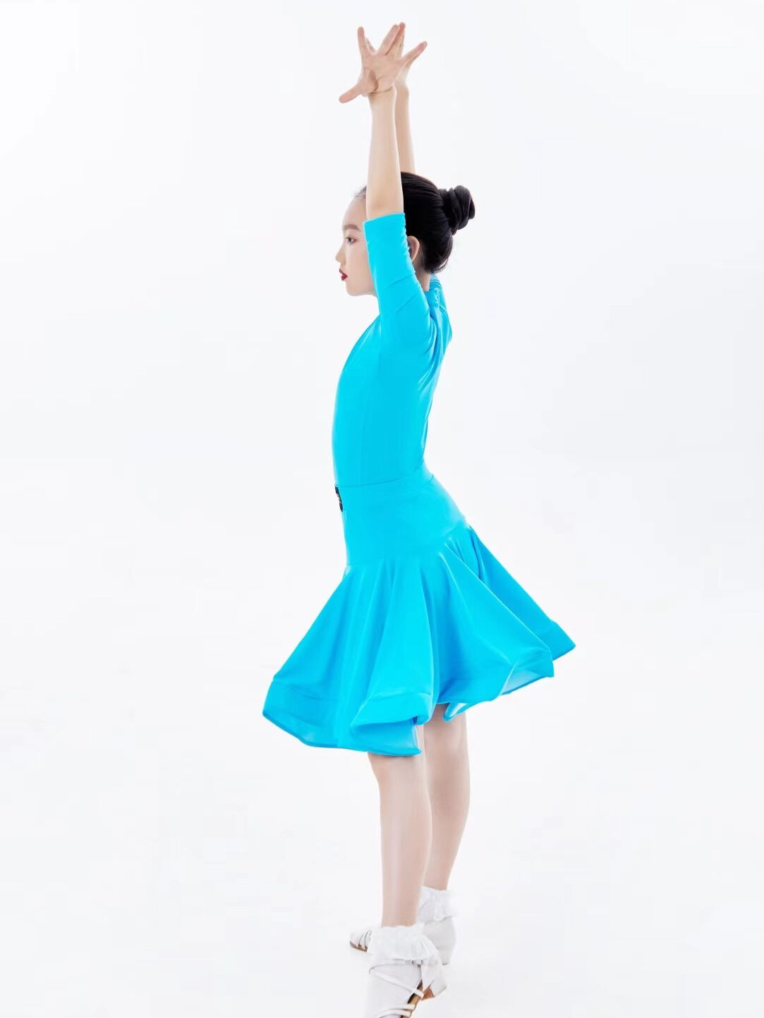 拉丁舞演出服比赛服女网红儿童拉丁舞服泡泡袖连衣裙少儿拉丁练功服