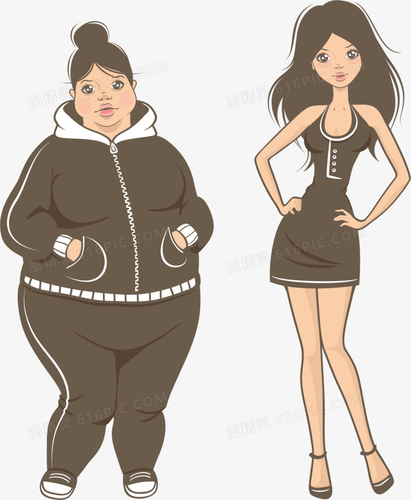 矢量手绘胖瘦女孩对比