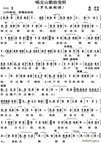 唱支山歌给党听(高清版) 歌谱简谱网