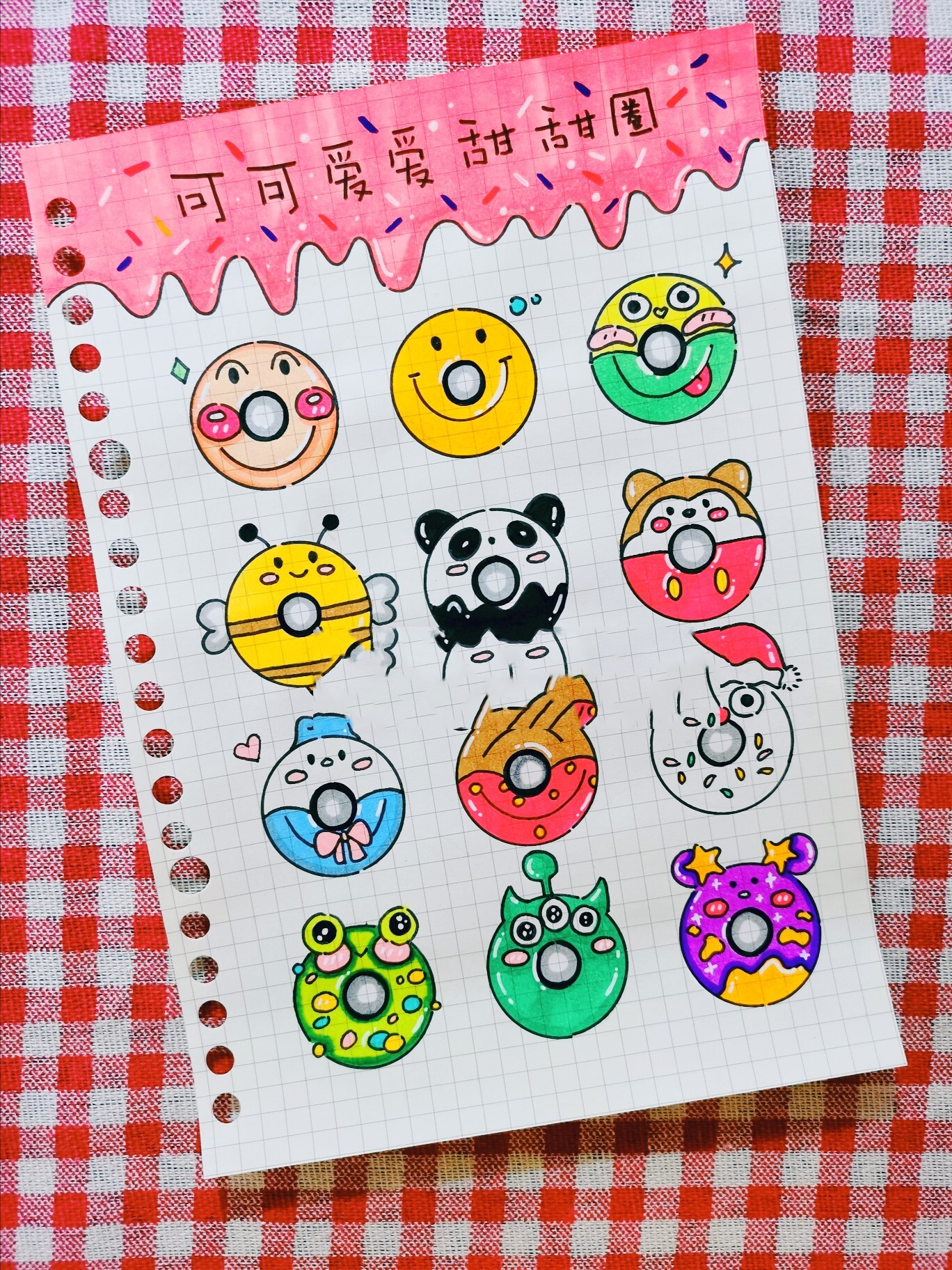 94可可爱爱动物甜甜圈手帐简笔画素材 90可可爱爱甜甜圈手帐素材