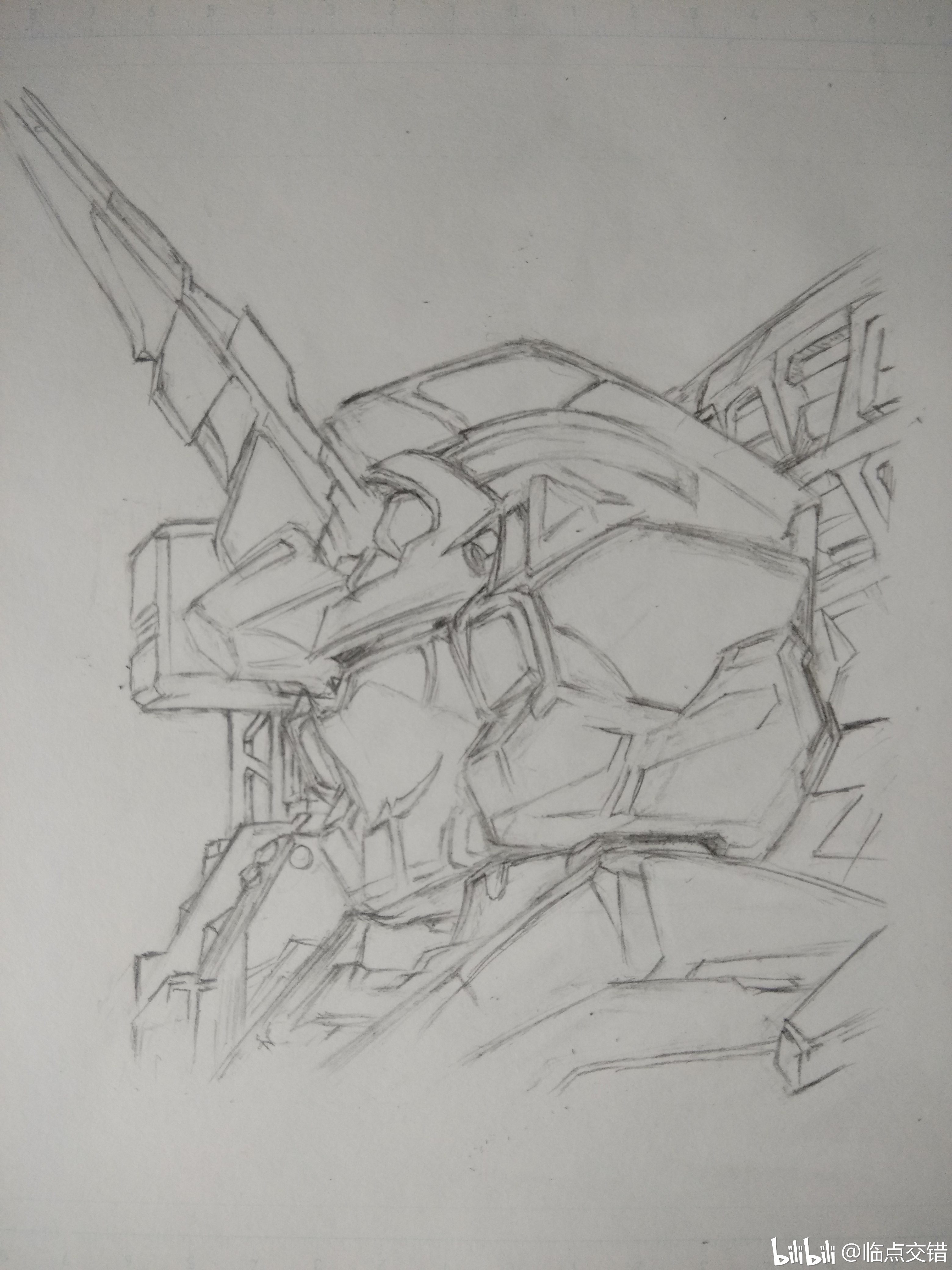 临摹的铅笔稿 字拉了….#高达 #独角兽高达 #绘画 #黑白画 #线描