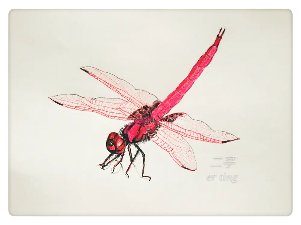 彩铅红蜻蜓 彩铅红蜻蜓(附作画过程)