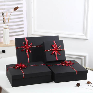 现货黑色礼品盒蝴蝶结礼物盒伴手礼盒创意长方形衬衫包装盒空盒子