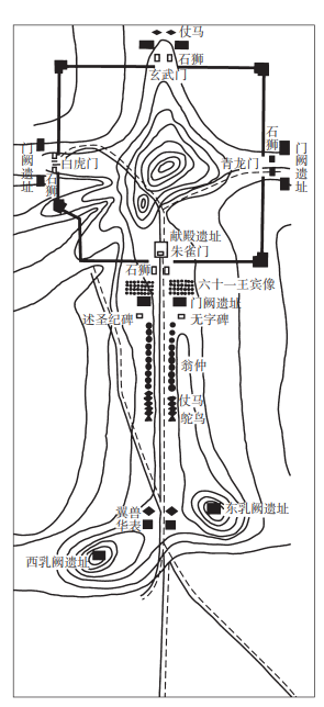 唐乾陵建筑分布示意图
